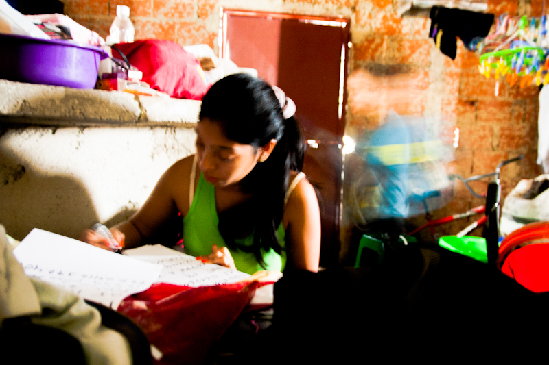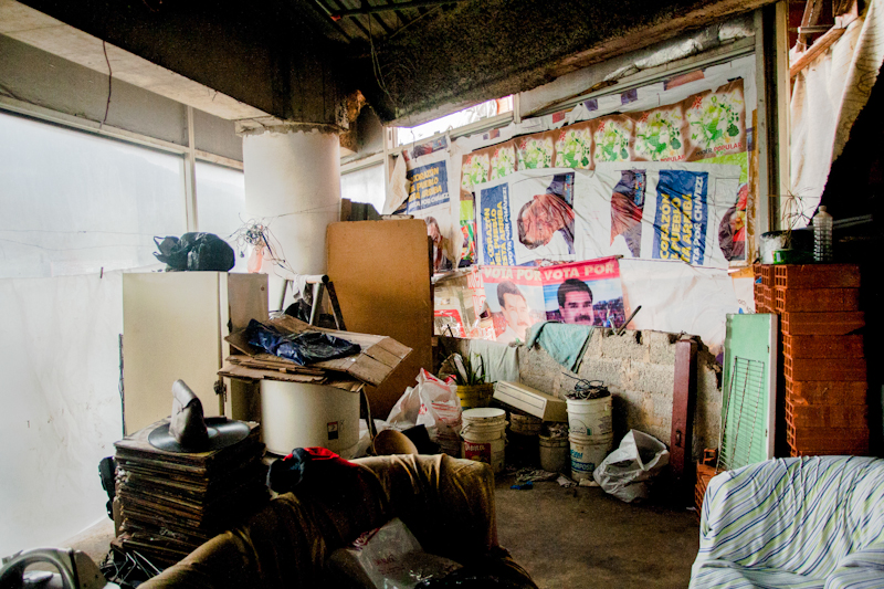 Relata, ya casi para finalizar su estadía en la Torre, que cuatro años atrás se mudó del barrio Unión de Petare. Posa su mano derecha sobre la rodilla, en la misma que sufre (detectado a raíz de la subida y bajada diaria de 27 pisos) una avanzada descalcificación ósea a sus 42 años.
